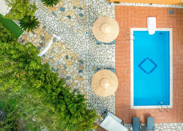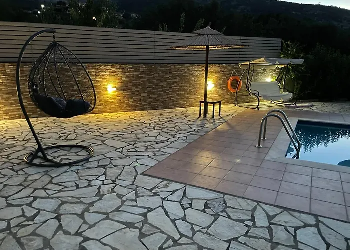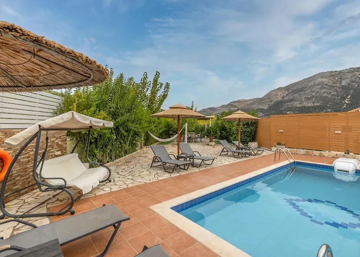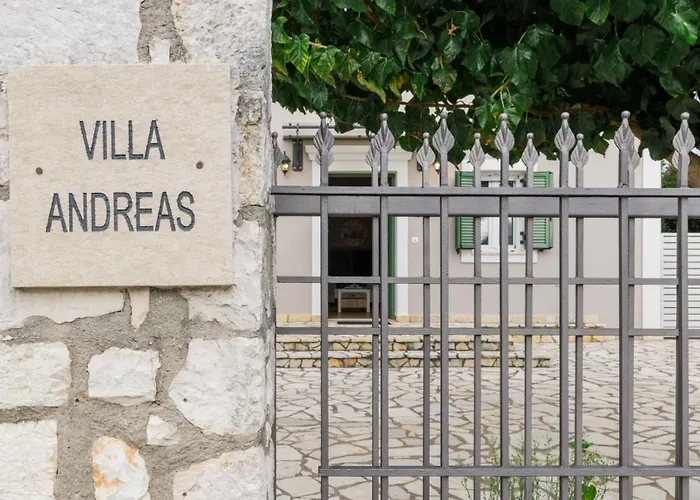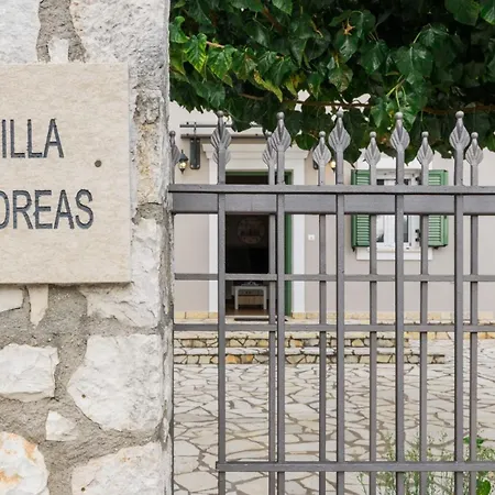A "Villa Andreas" oferece vistas para a piscina. A acomodação dispõe de casa de banho com chuveiro de corrediça e casa de banho separada. Secador de cabelo, lençóis de banho e toalhas também estão à sua disposição.