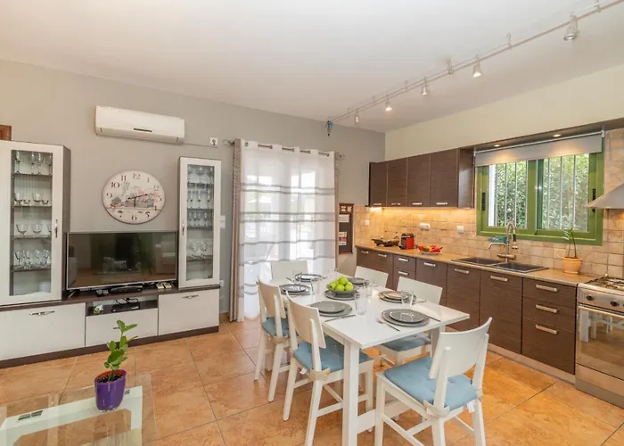 Os hóspedes podem preparar refeições numa cozinha totalmente equipada ou jantar em zona de refeições e uma área de refeições ao ar livre. Também há chaleira elétrica, refrigerador e utensílios de cozinha disponíveis na cozinha. Localizado a 5 minutos de distância a pé, Maklithari serve pratos da culinária Griekse. O aeroporto em Argostoli, Cefalonia está localizado a 40 km de distância desta propriedade de Agia Efimia. Passe o dia desfrutando de tênis de mesa, bem como de piscina privada.